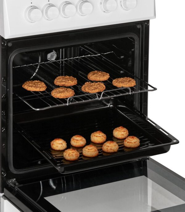 De oven van de Beko FSS52001DWNL beschikt over verlichting. Je wilt namelijk je creatie perfect zien rijzen. Daarom hebben de ovens van Beko in de linkerhoek halogeenlampen. Zo kun je zelf zien hoe je bakkunsten reizen. Tenslotte proef je de eerste hap met je ogen.
