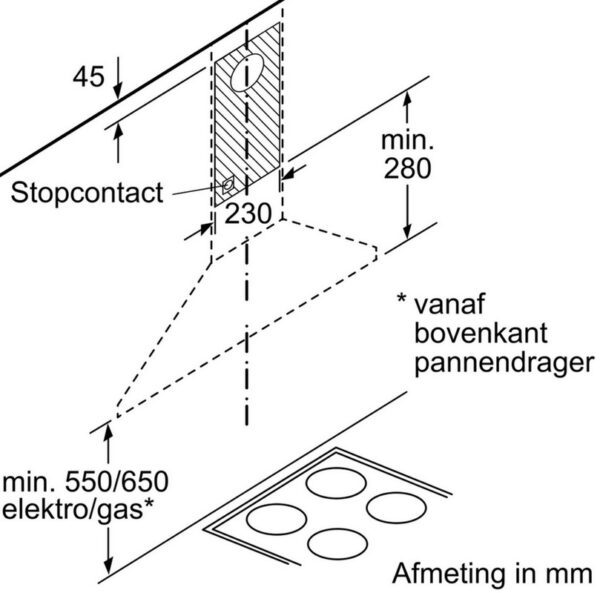- Deze afzuigkap is geschikt voor afvoer naar buiten. De diameter boven is 150 - 120 mm.