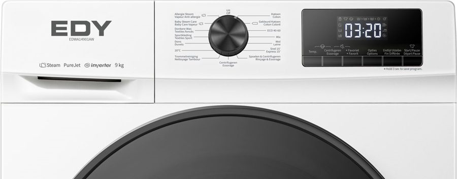 De EDY EDWA14901AW wasautomaat heeft een trommel inhoud voor 9kg wasgoed. Deze machine is door zijn grote deur makkelijk te vullen, is erg eenvoudig in bediening en beschikt over 15 programma’s zodat er altijd wel een geschikt programma tussen zit. Met zijn A energielabel behoort de EDWA14901AW tot één van de zuinigste wasautomaten.