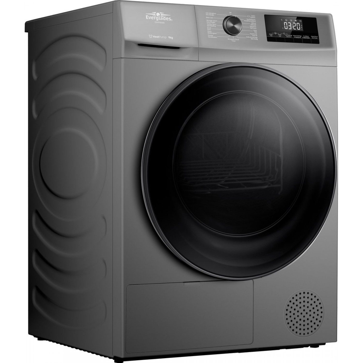 De Everglades EVHP9056B, in een luxe titanium uitvoering, is de nieuwste warmtepompdroger in de Everglades line up. Met een vulgewicht van 9kg en een energieklasse van A+++ voldoet deze droger aan alle wensen en is hij één van de zuinigste 9kg drogers op de markt.