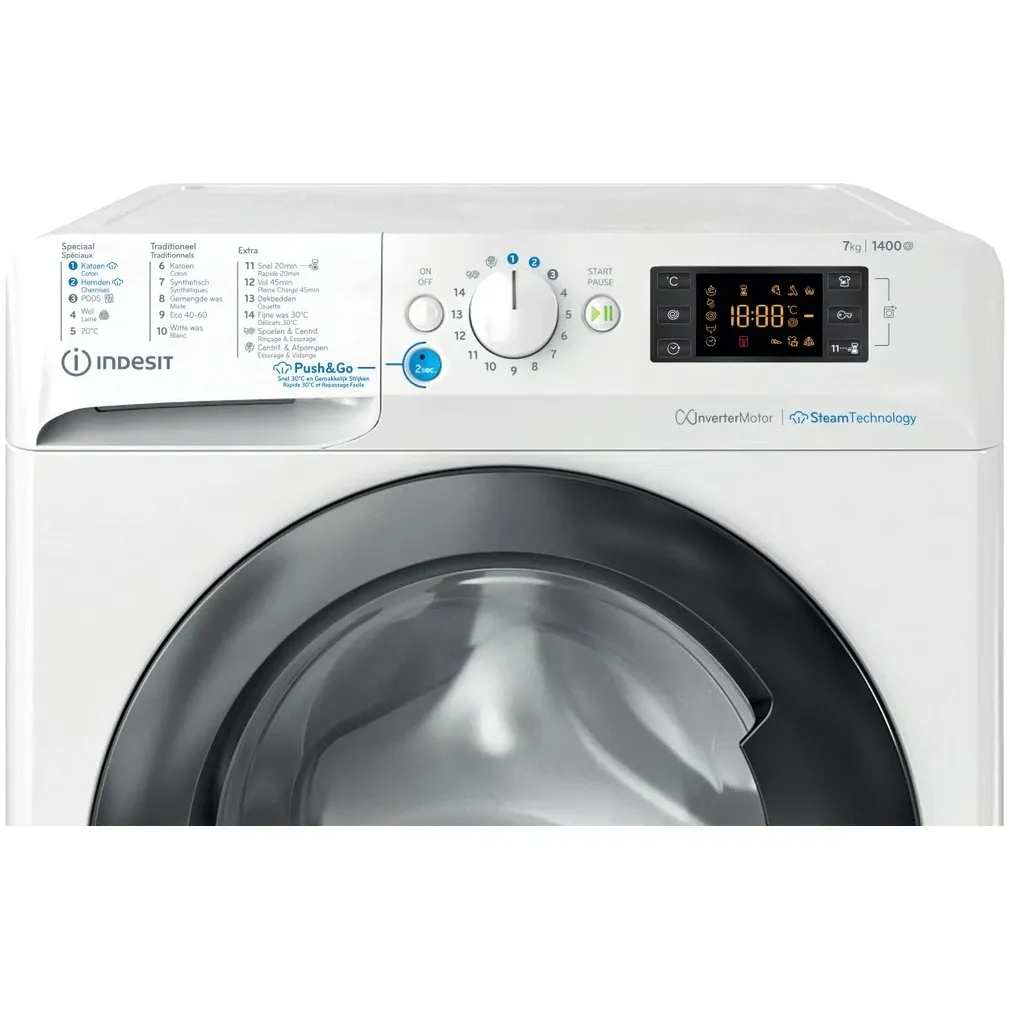 Met de Indesit BWEBE 71496X WKV kun je je favoriete kleding lekker zacht en met zo goed als geen kreuken wassen – in amper één uur. Deze wasmachine biedt jou ultiem gemak dankzij innovatieve functies zoals Push&Go met stoom, het PODS® programma en de snelle programma's. Ontdek hieronder de vele voordelen van deze fantastische wasmachine en ervaar zelf hoe deze jouw leven gemakkelijker maakt.