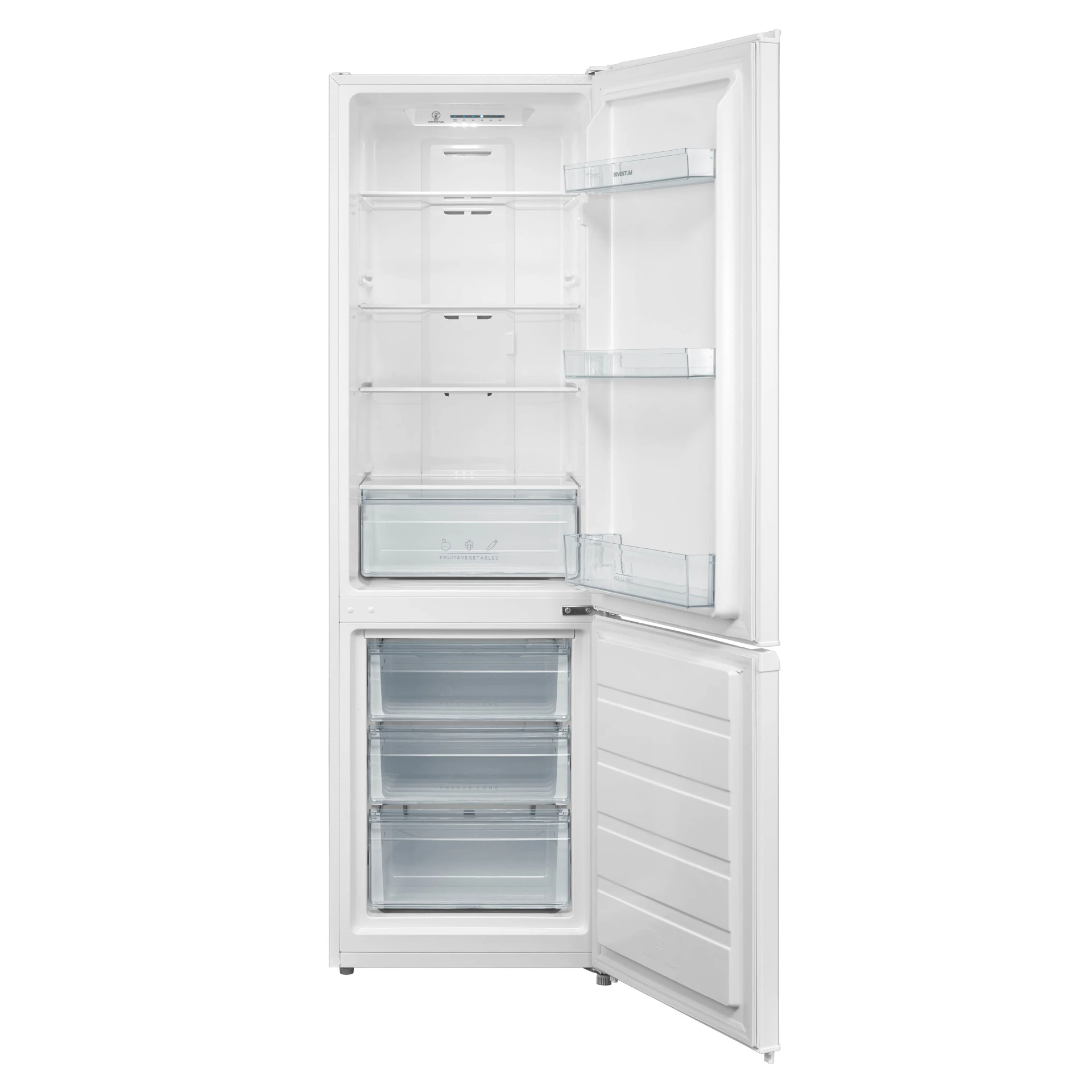 De Inventum vrijstaande koel- vriescombinatie KV1808W heeft een inhoud van 270 liter. Het apparaat heeft een luxe uitstraling, is voorzien van een digitale thermostaat en is afgewerkt met rvs details. Het is een koel- vriescombinatie met energieklasse D. Het 4 sterren, No Frost vriesgedeelte met supervriezen en een inhoud van 71 liter, heeft een invriesvermogen van 3,5 kg/24u. Het ruime koelgedeelte van 199 liter heeft een handige superkoelen stand. Daarmee kun je grote hoeveelheden voedsel snel koelen en daardoor langer bewaren. Verder is de koel- vriescombinatie voorzien van energiezuinige led-verlichting. De koel- vriescombinatie heeft 4 glazen draagplateaus en onderin 1 transparante groentelade. Met 3 deurvakken waarvan 1 flessenvak en 1 eierrekje berg je al je etenswaren netjes op. Deze onderdelen zijn eenvoudig te verwijderen, zodat je ze goed kunt schoonmaken.