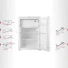 De Inventum vrijstaande koelkast KV550 met vriesgedeelte heeft een totale netto inhoud van 113 liter. Het is een koelkast met energieklasse D. Het 4 sterren vriesgedeelte met een netto inhoud van 16 liter, heeft een invriesvermogen van 2 kg/24u. De koelkast heeft 2 draagplateaus en onderin 1 transparante groentelade. Met 3 deurvakken, waarvan 1 voor flessen berg je al je etenswaren netjes op. Deze onderdelen zijn eenvoudig te verwijderen, zodat je ze goed kunt schoonmaken.