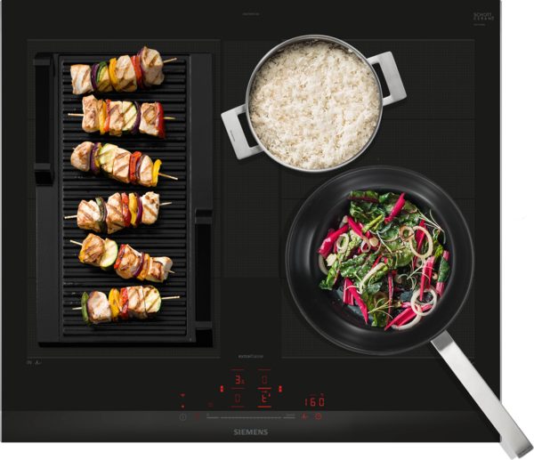 De Siemens EX675HYC1M beschikt over vier inductiezones. Bij gebruik van grotere pannen of een braadslee worden de zones automatisch aan elkaar gekoppeld, zodat je moeiteloos en efficiënt kunt koken, ongeacht de grootte van je kookgerei.