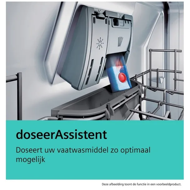 De doseerAssistent is speciaal ontworpen voor de handige 3-in-1, 4-in-1 of 5-in-1 tabletten. Dankzij doseerAssistent vallen deze vaatwastabletten rechtstreeks in een kleine opvangbak. Een nauwkeurig gerichte waterstraal zorgt er vervolgens voor dat de tabletten snel oplossen. Waarna het vaatwasmiddel gelijkmatig door de vaatwasser wordt verspreid. Zo ben je altijd verzekerd van de beste afwasresultaten.